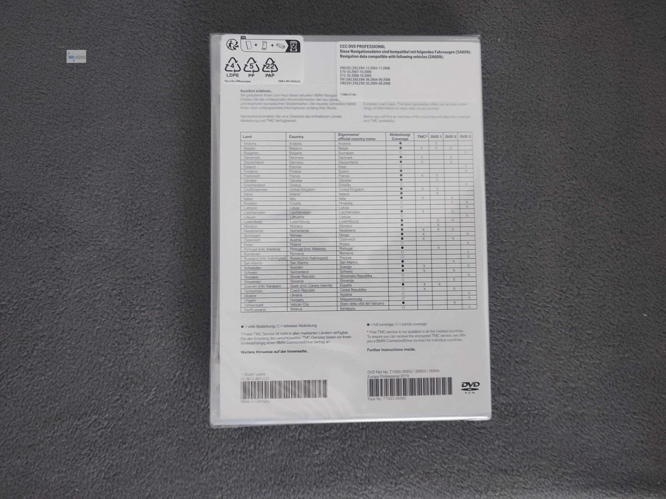 BMW PROFESSIONAL CCC Navi DVD SET EUROPA DEUTSCHLAND 2019 (NEU)
