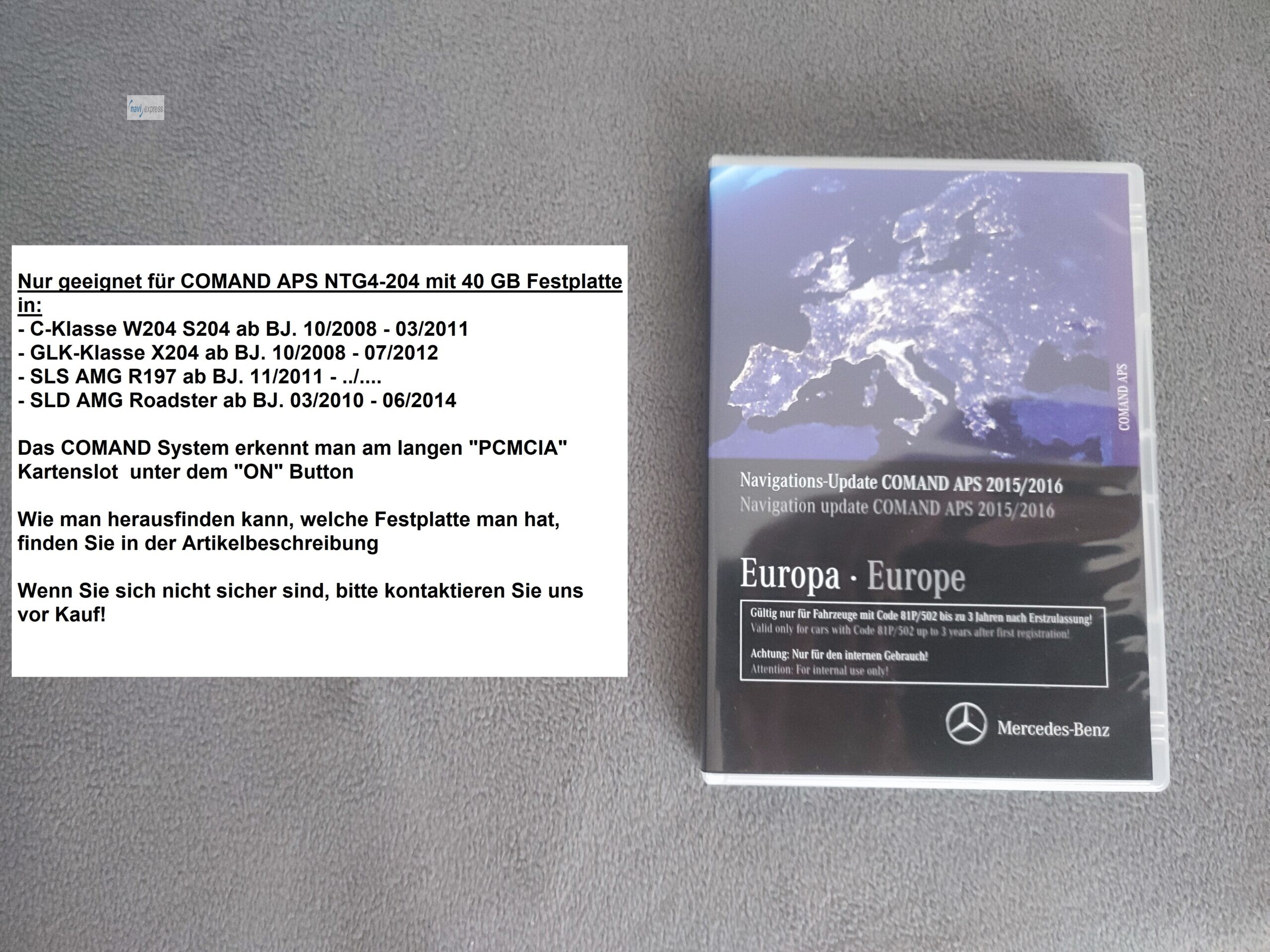 Nicht einsetzbar auf: C-Klasse mit BJ. 03/2007 bis 10/2008 wegen zu kleiner Festplatte