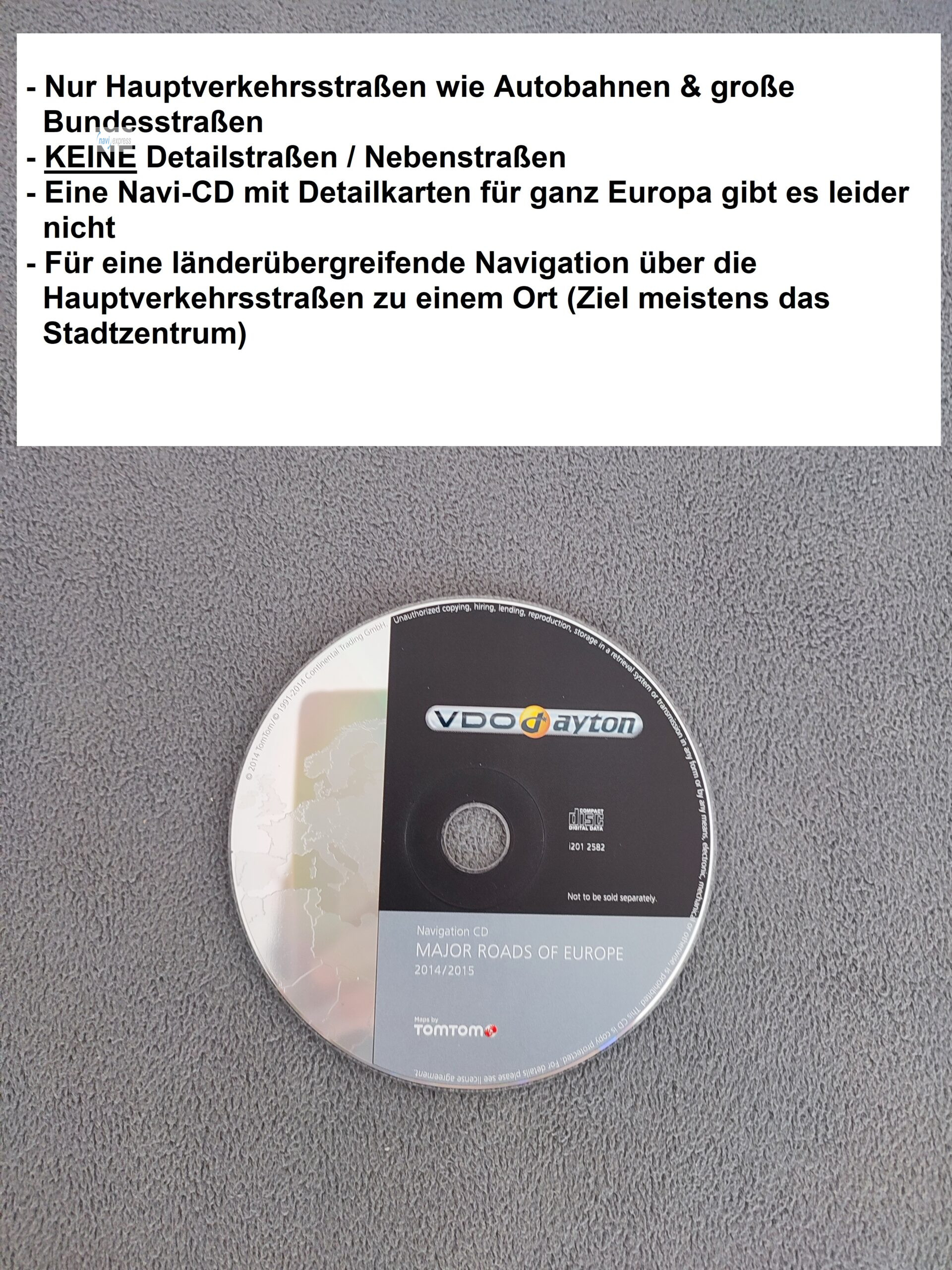 Original VDO Dayton Major Roads of Europe Navigations-CD von 2014/2015 in gebrauchtem, funktionalen Zustand